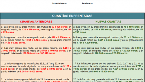 - Quizás la modificación de mayor relevancia es la que retoca las cuantías sancionadoras de la LISIS (Ley de Infracciones y Sanciones en el Orden Social), en concreto del artículo 40 de la citada Ley, y que entrarán en vigor el 1 de octubre de 2021 (disp. final 14ª), pero habrá de tenerse en cuenta que las infracciones cometidas antes de esa fecha se sancionarán conforme a las cuantías sancionatorias vigentes hasta entonces (disp. trans. 2ª).